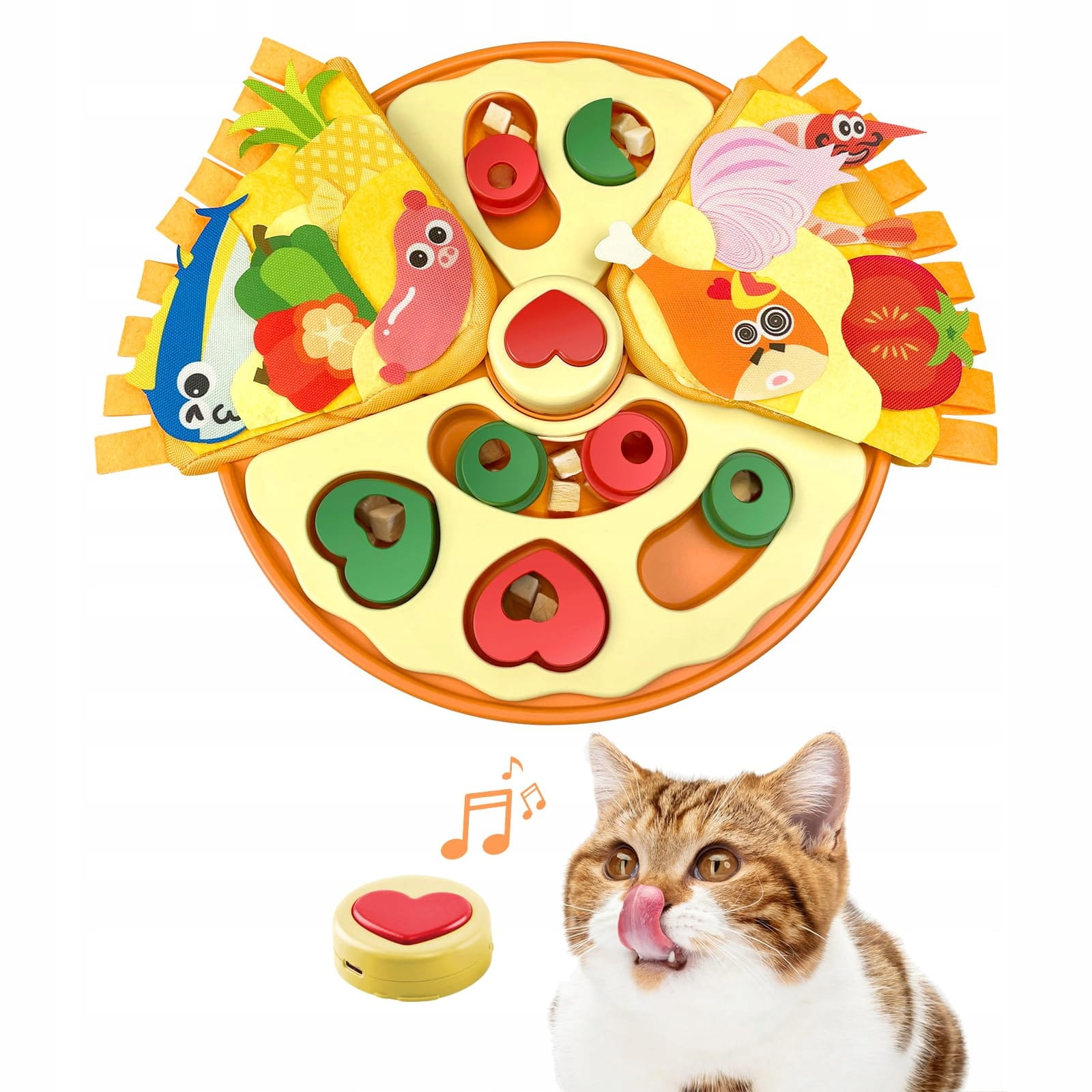 Interaktywna zabawka dla kota Migipaws, zabawka rozwijająca inteligencję dla kotów i szczeniąt, mata węchowa do powolnego jedzenia i nauki przez zabawę, piszcząca zabawka z funkcją nagrywania (Pizza)