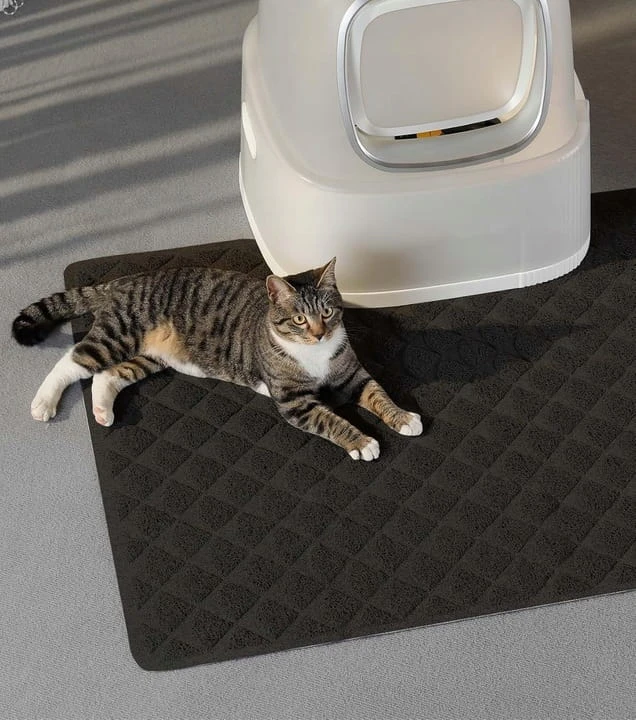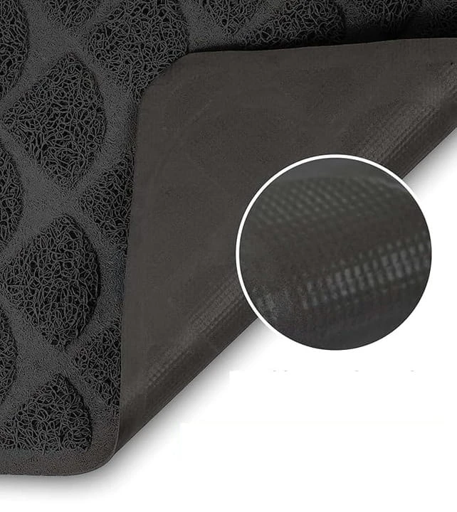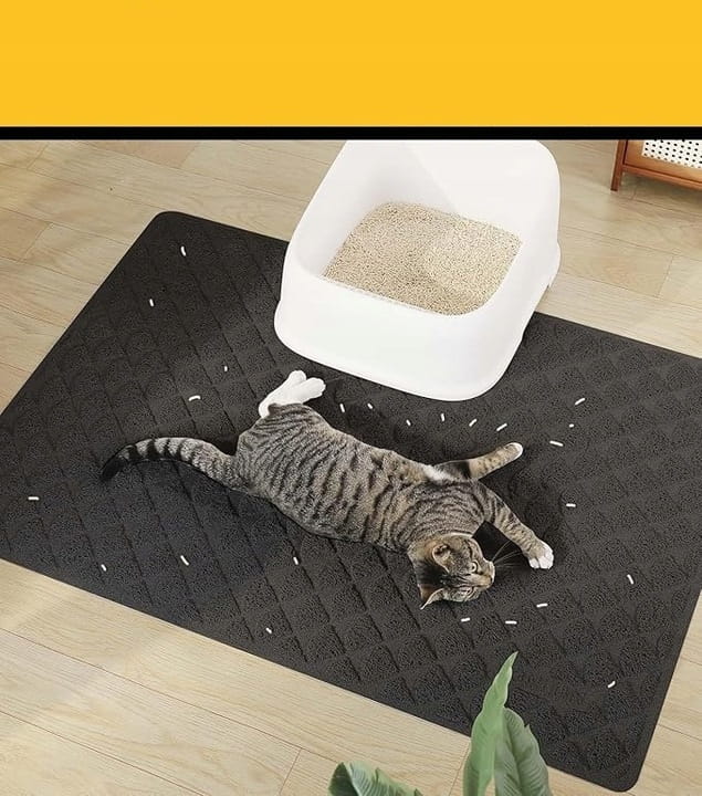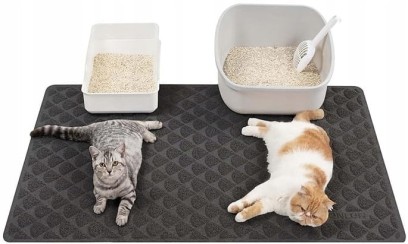 - Trwałość: trwała i wytrzymała tylna strona jest wyjątkowo antypoślizgowa, dzięki czemu mata dla kota pozostaje bezpiecznie na swoim miejscu nawet poza kuwetą, nie uszkadzając powierzchni podłogi; wystarczająco trwała, aby wytrzymać zarysowania kota.