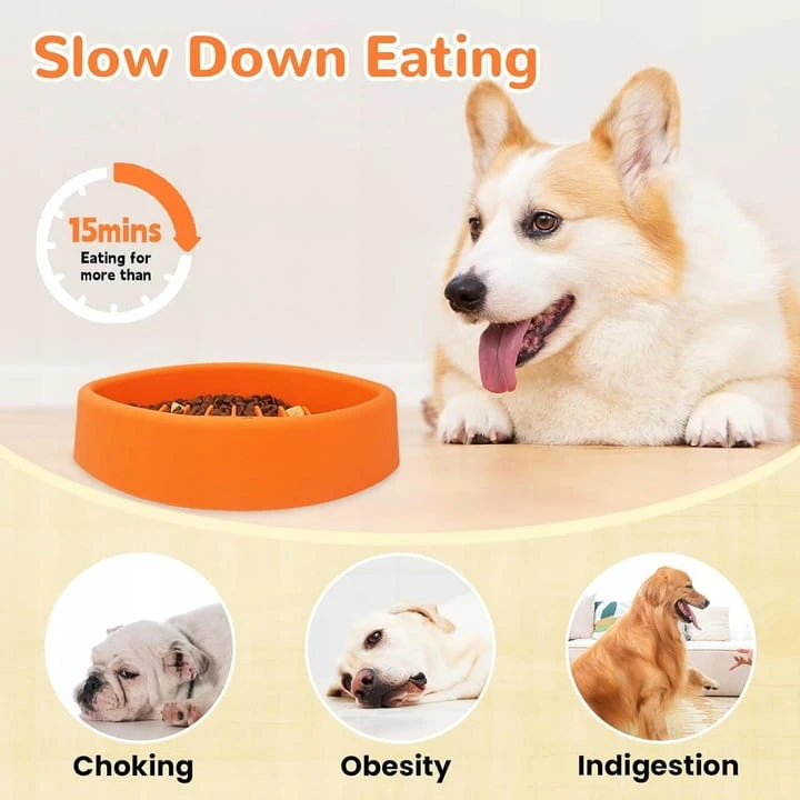 Kiedy psy/koty szybko połykają pokarm, mogą wystąpić wzdęcia, otyłość i zadławienie. Wielu weterynarzy zaleca używanie misek na karmę dla psów, aby pomóc psom w zdrowym trawieniu.