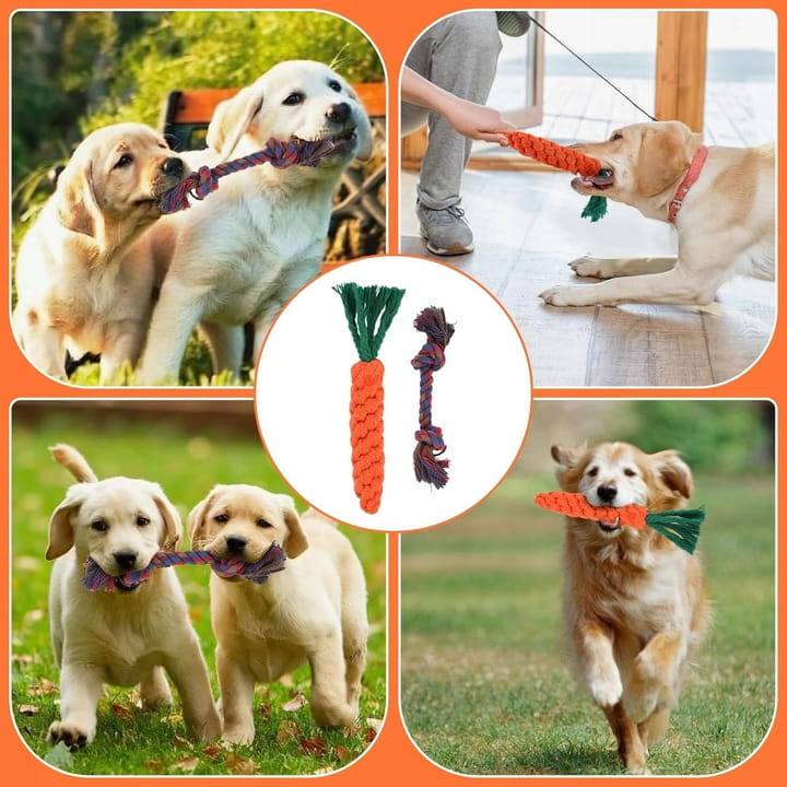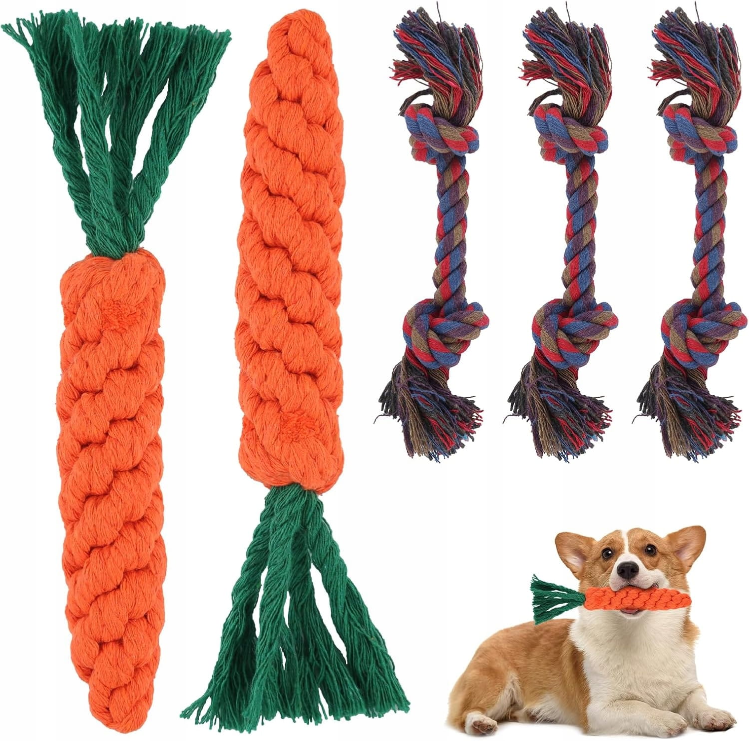 Zestaw 5 zabawek dla psów: marchewka i zabawka z liny pleciona